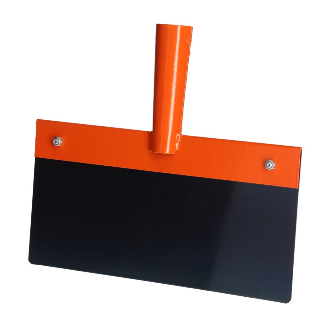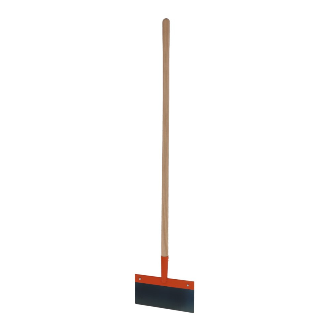 Kūtsmēslu tērauda skrāpis ar rokturi.