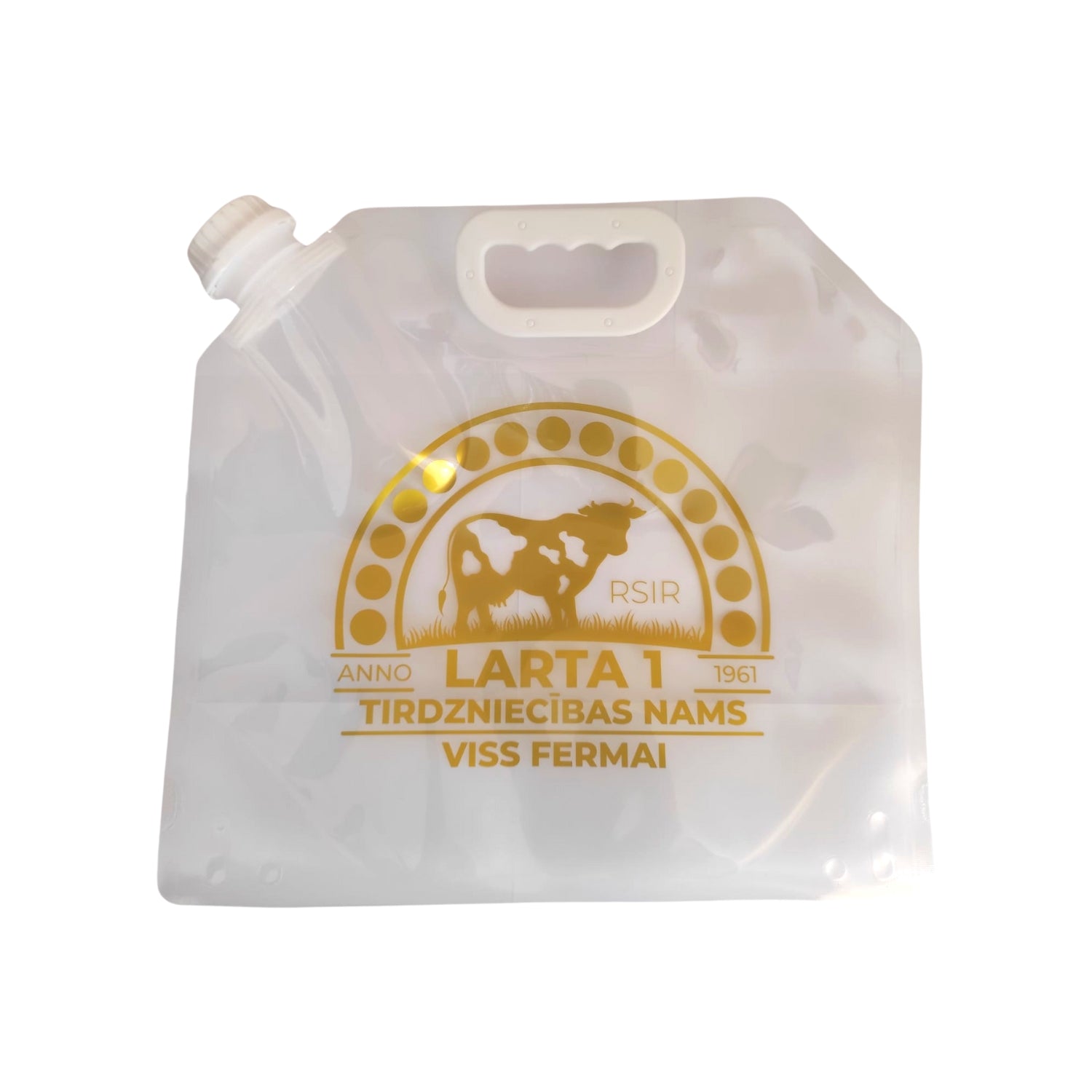 Plastmasas pārtikas maisiņš šķidrumiem ar korķi un rokturu.