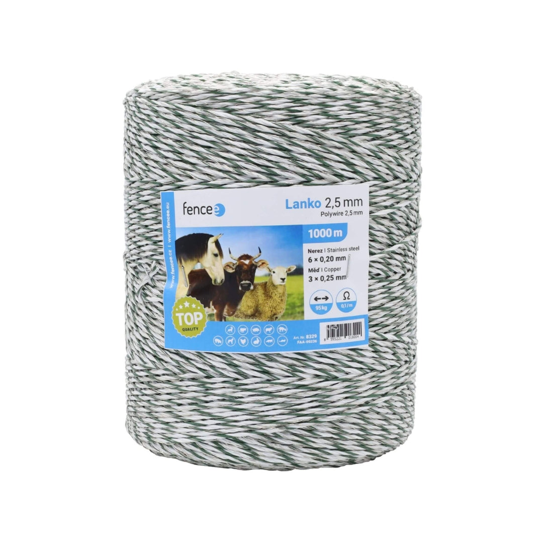 Elektriskā gana aukla ar ļoti labu strāvas vadītspēju, stipra un izturīga, sastāv no 6 x 0.20 mm nerūsējošā tērauda stieplēm un 3 x 0,25 mm vara stieplēm.