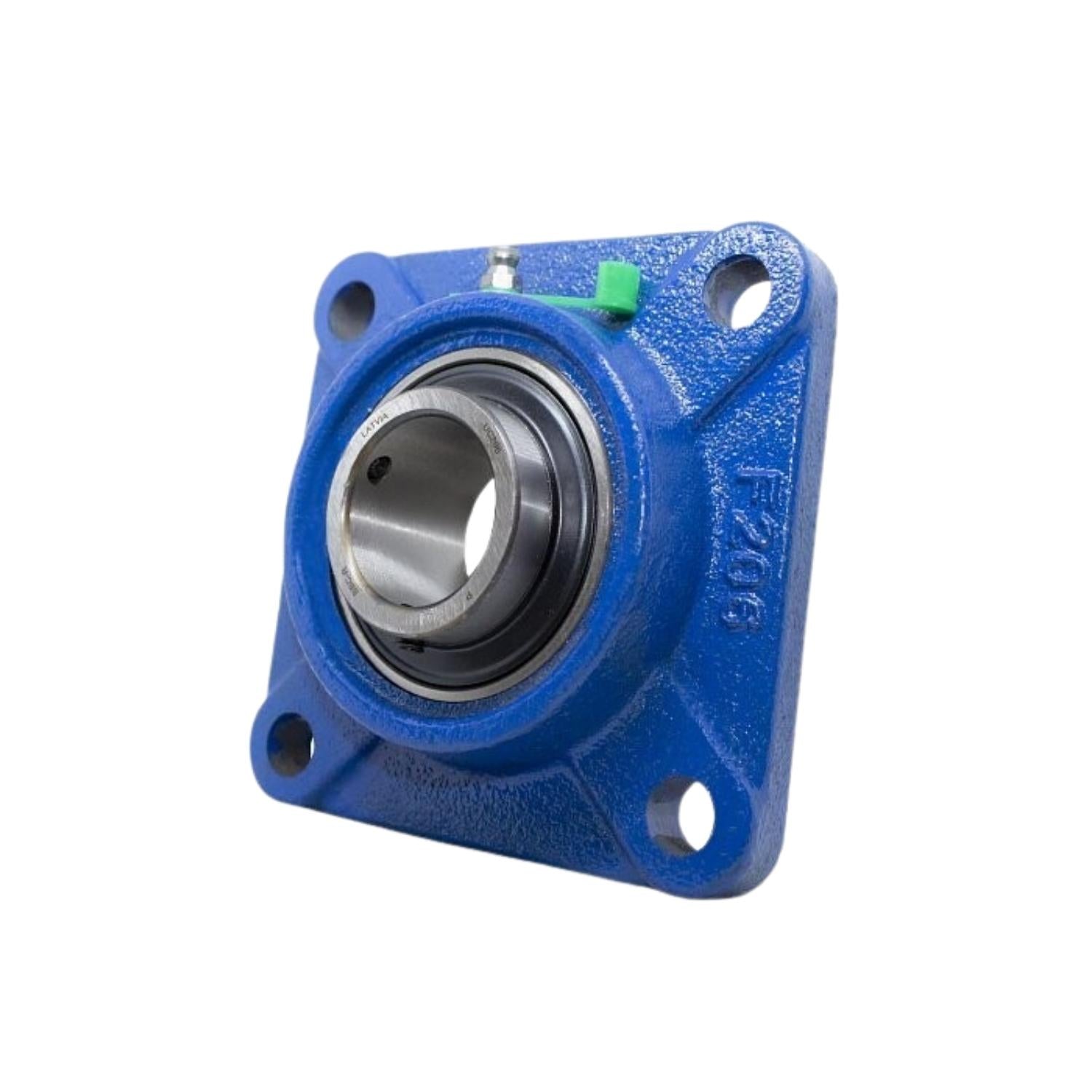 Gultnis UCF206 BBCR lauksaimniecības tehnikai. UCF gultņa mezgls sastāv no čuguna atloka (kvadrātveida) korpusa-F un ar četrām stiprinājuma atverēm.