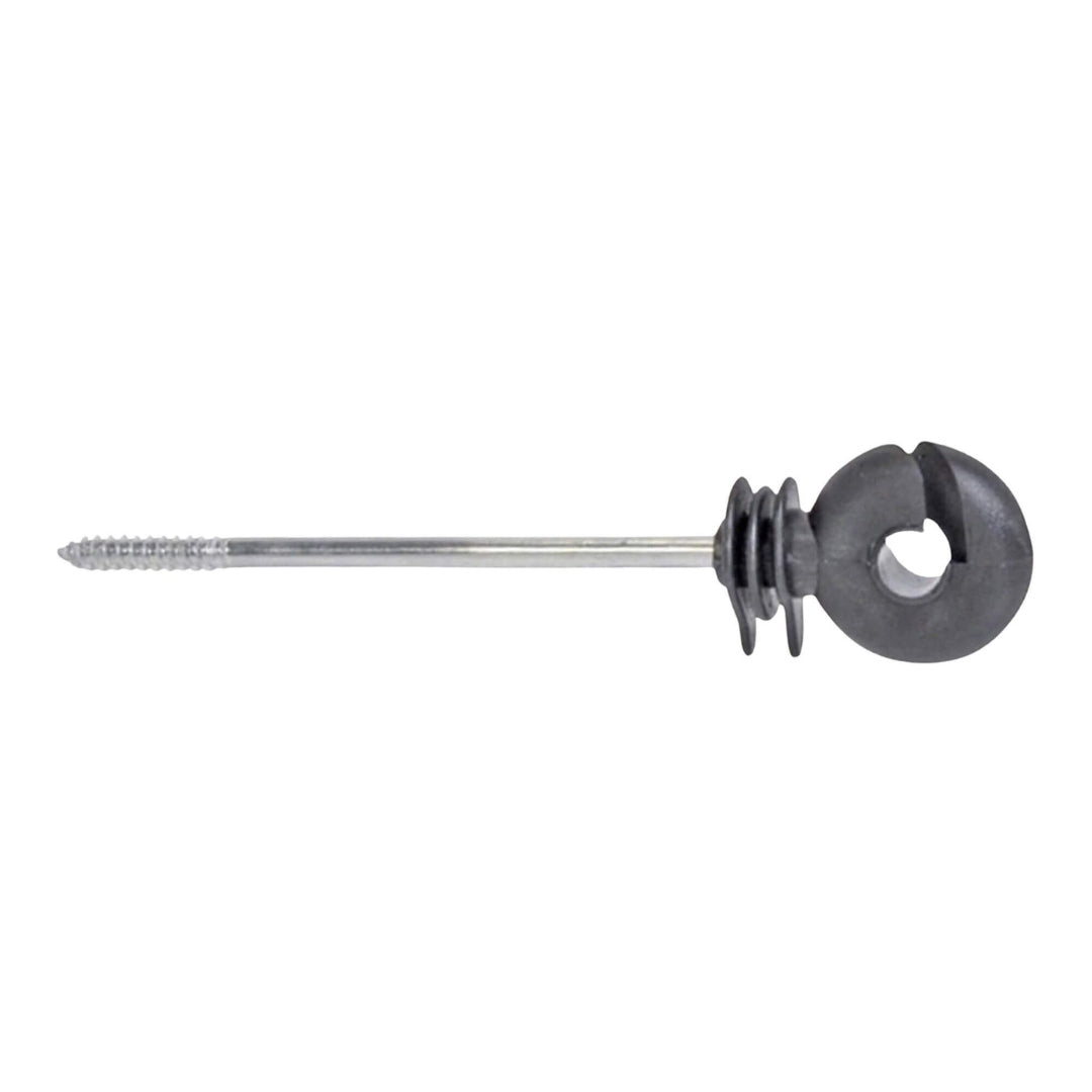 Gredzenveida izolators 10 cm ar skrūvi, triecienizturīga plastmasa. Piemērots auklai, stieplei, un lentei līdz 12 mm.