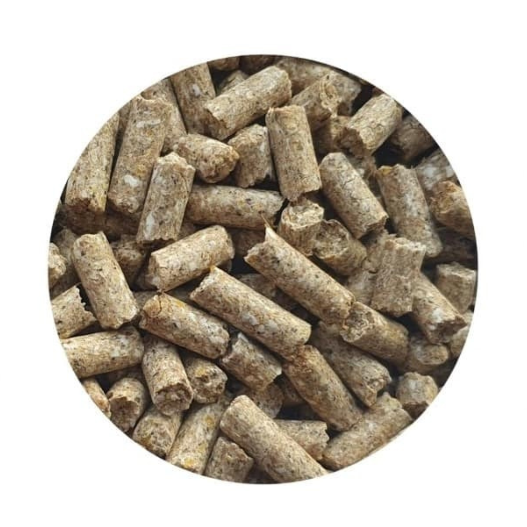 Mieži, kvieši, kviešu klijas, saulespuķu sēklu milti, rapšu sēklu rauši, cukurbiešu melase, kalcija karbonāts, nātrija hlorīds, monokalcija fosfāts.