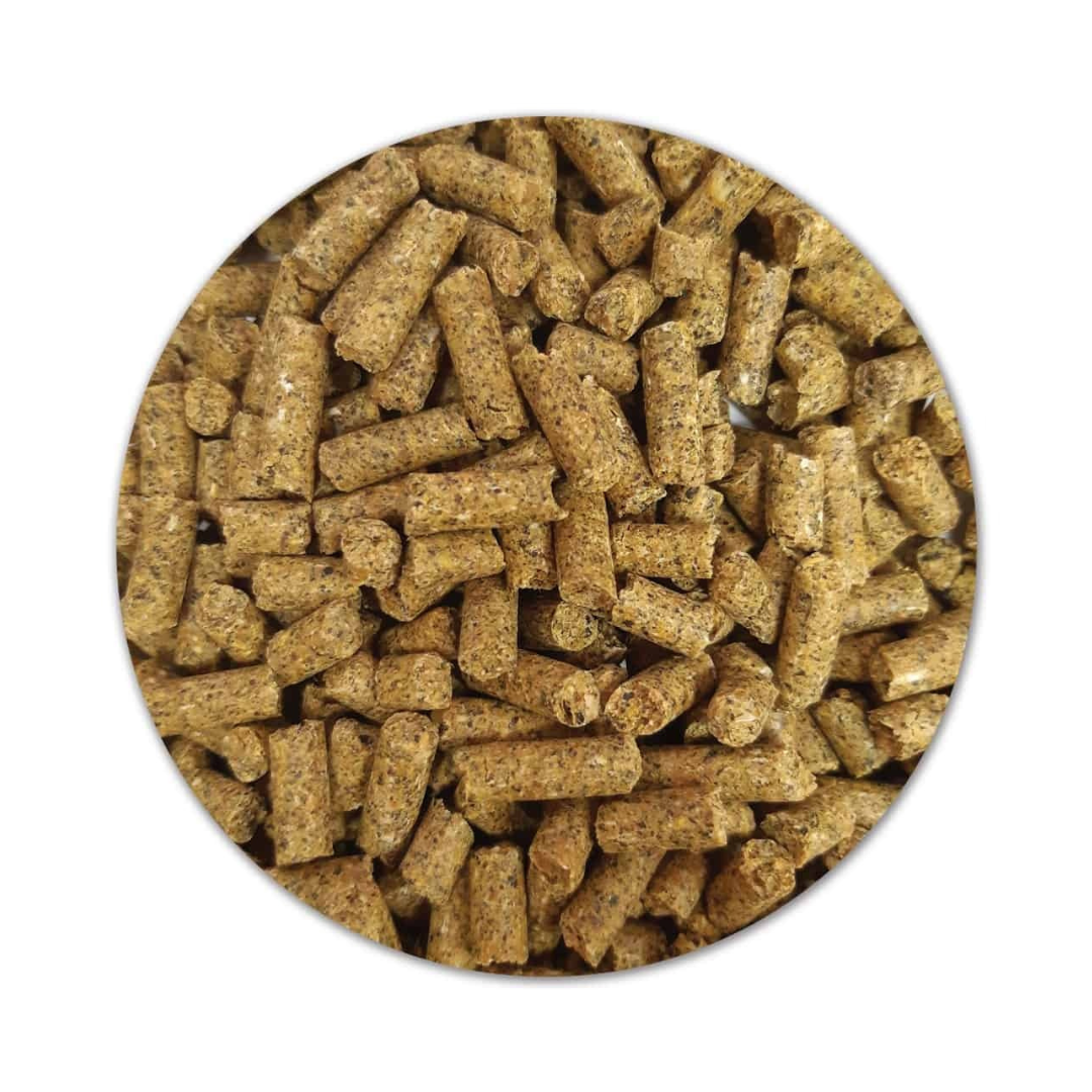 Mieži, kukurūza, kvieši, rapšu milti (izpiedas), sojas milti (izpiedas) – ĢMO, linsēklu rauši, (cukur) biešu melase, kalcija karbonāts, alus raugs, monokalcija fosfāts, vitamīnu un minerālvielu komplekss.