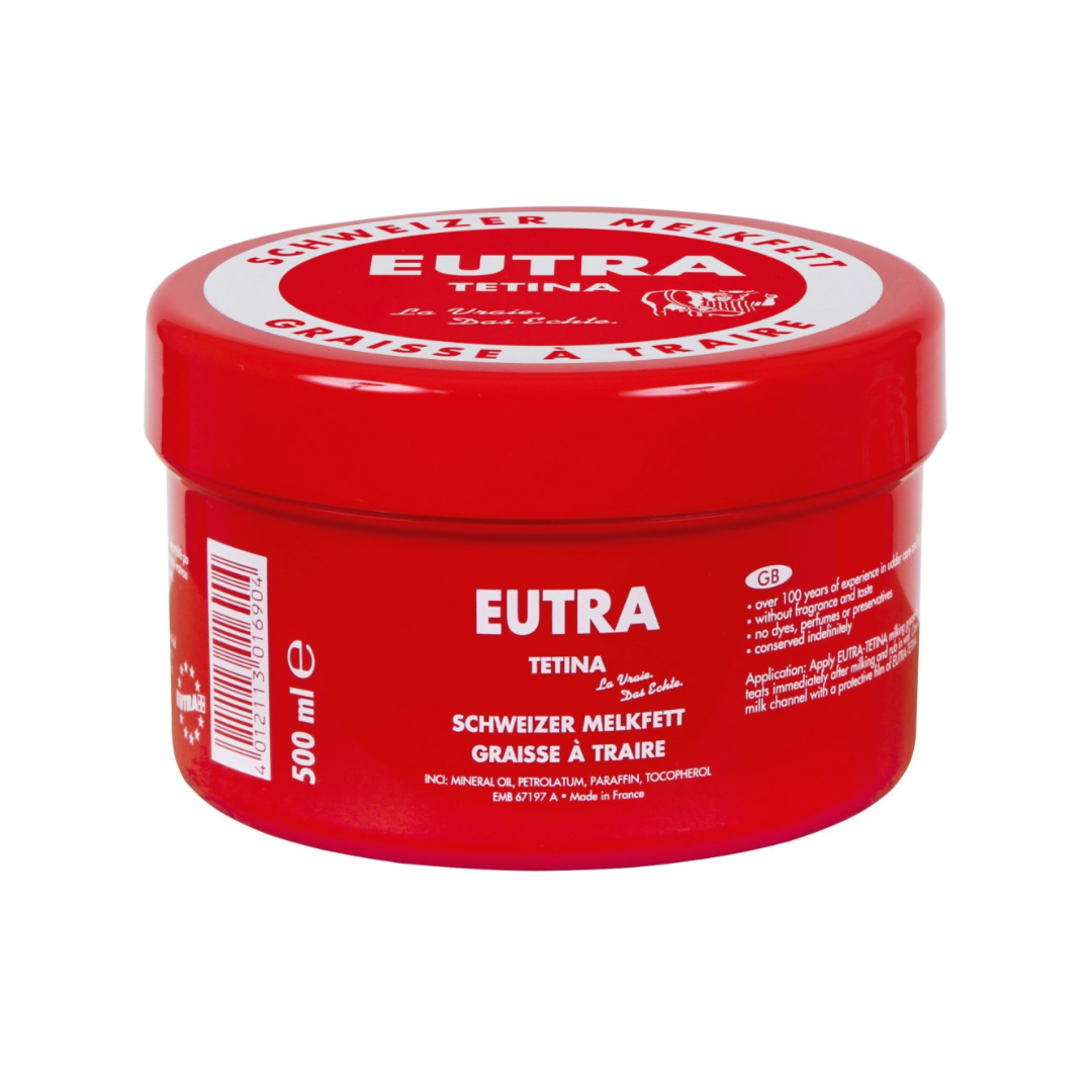 EUTRA ir augstas kvalitātes aizsargkrēms, kas paredzēts govju tesmeņu kopšanai un aizsardzībai. Tā nodrošina mitrināšanu, aizsargā pret plaisāšanu un kairinājumu, kā arī palīdz uzturēt ādu mīkstu un elastīgu. Produkts ir īpaši izstrādāts, lai samazinātu berzi slaukšanas laikā un uzlabotu dzīvnieku labsajūtu.
